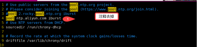 pool ntp.aliyun.com iburst 同步阿里云的时间