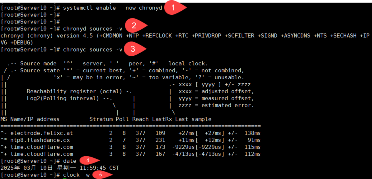 [root@server10 ~]# systemctl enable --now chronyd 启动时间同步并设置开机启动