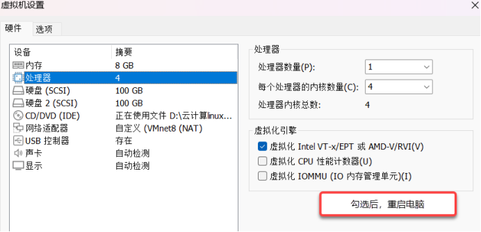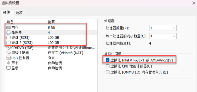 六、添加一块新的硬盘,并开启虚拟化Intel VT-x/EPT