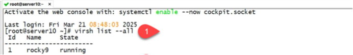 [root@server10 ~]# virsh start rocky9-1 启动rocky9-1的虚拟机