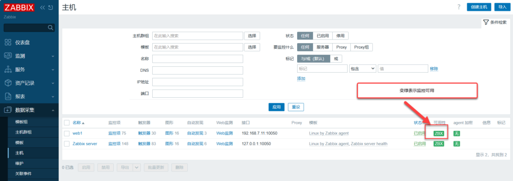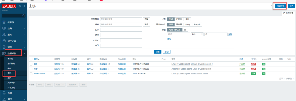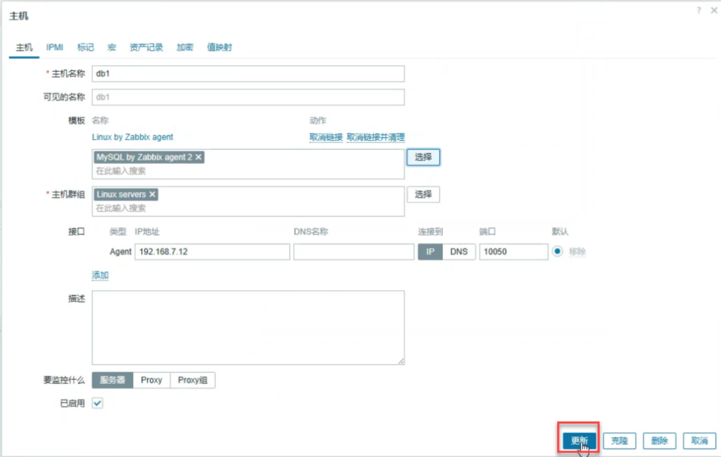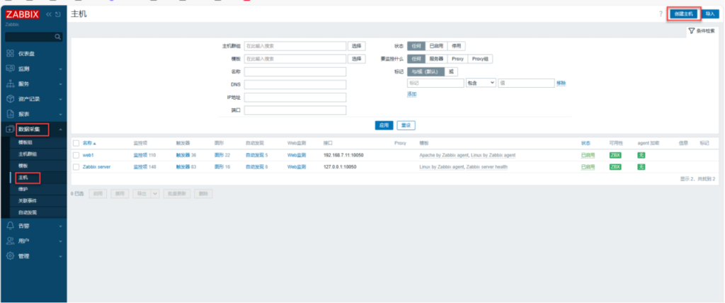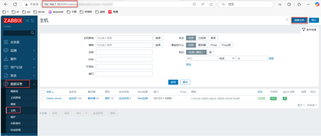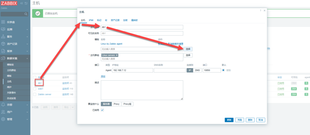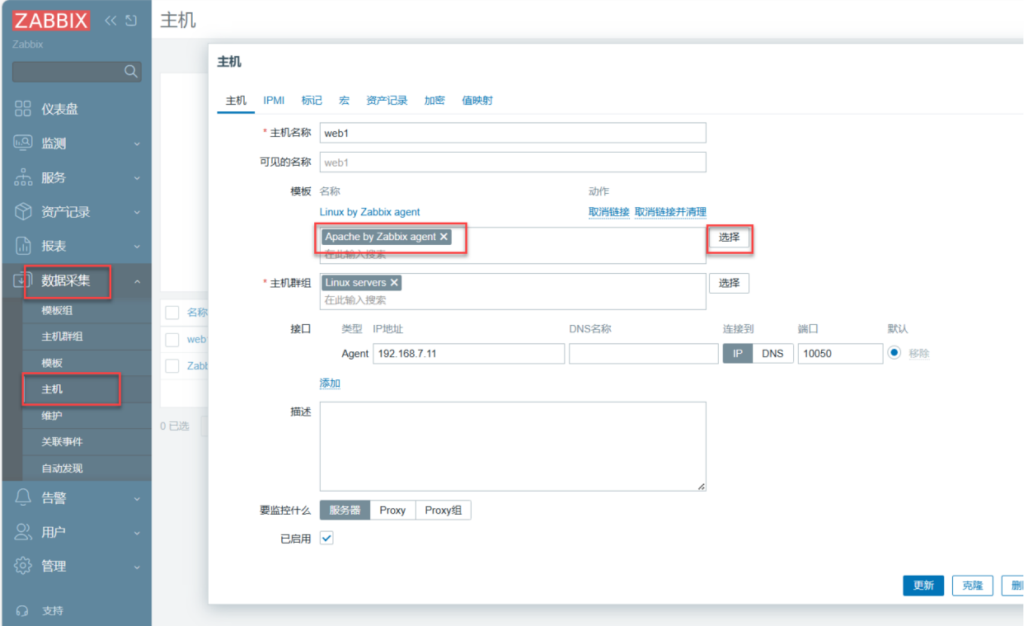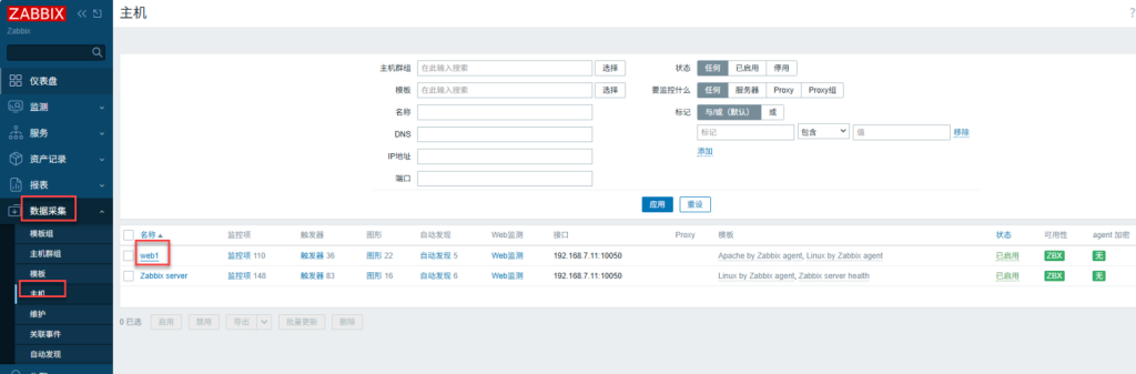 1.15 本机输入网址:192.168.7.10:8080 在zabbix上关联主机