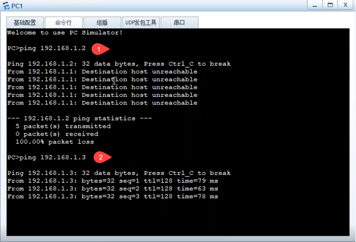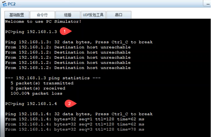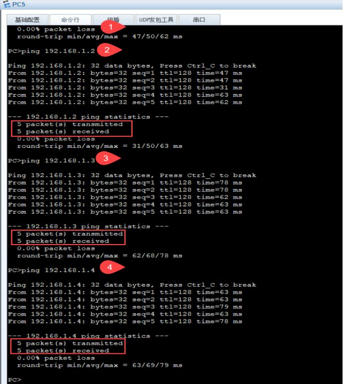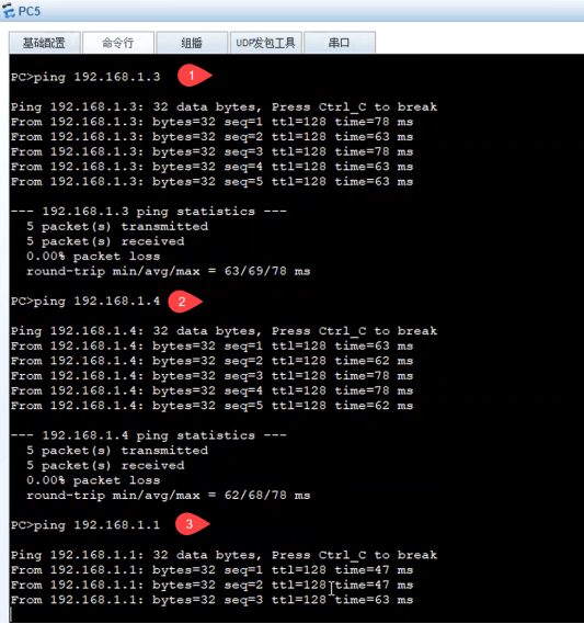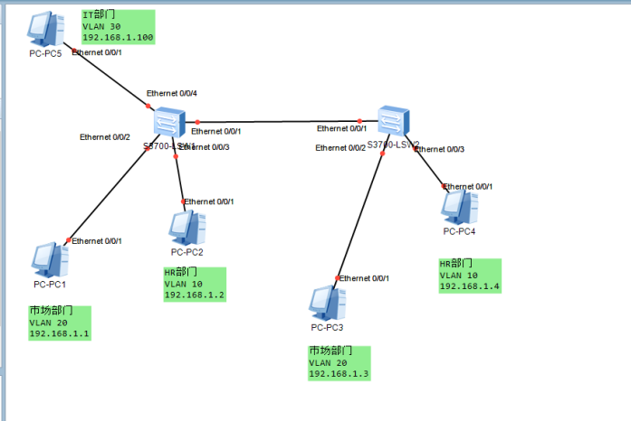 六、划分vlan后测试,不同部门之间是否不能互相通信