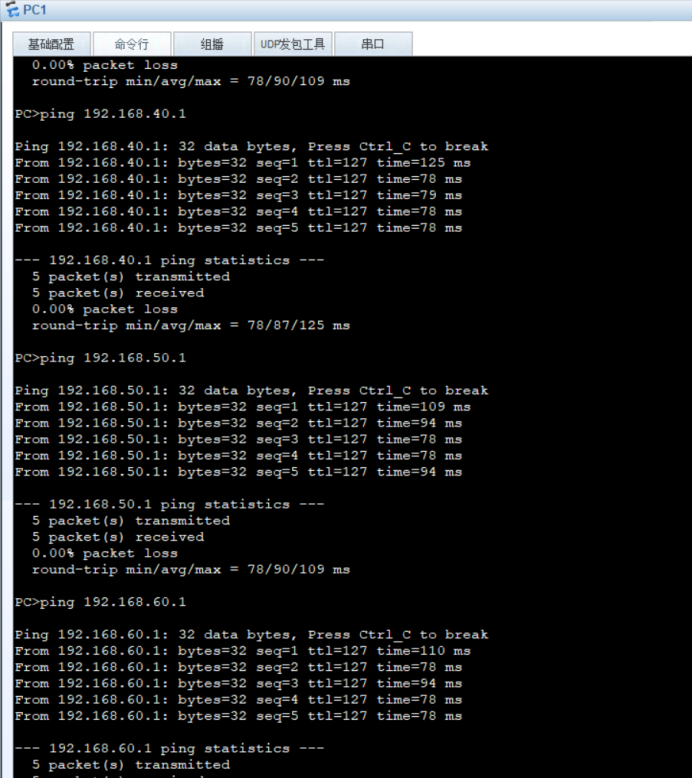 [2sw2]vlan batch 40 50 60 创建vlan40、50、60