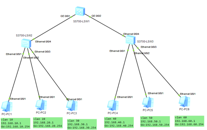 [3sw1]vlan batch 10 20 30 40 50 60 创建vlan10 20 30 40 50 60