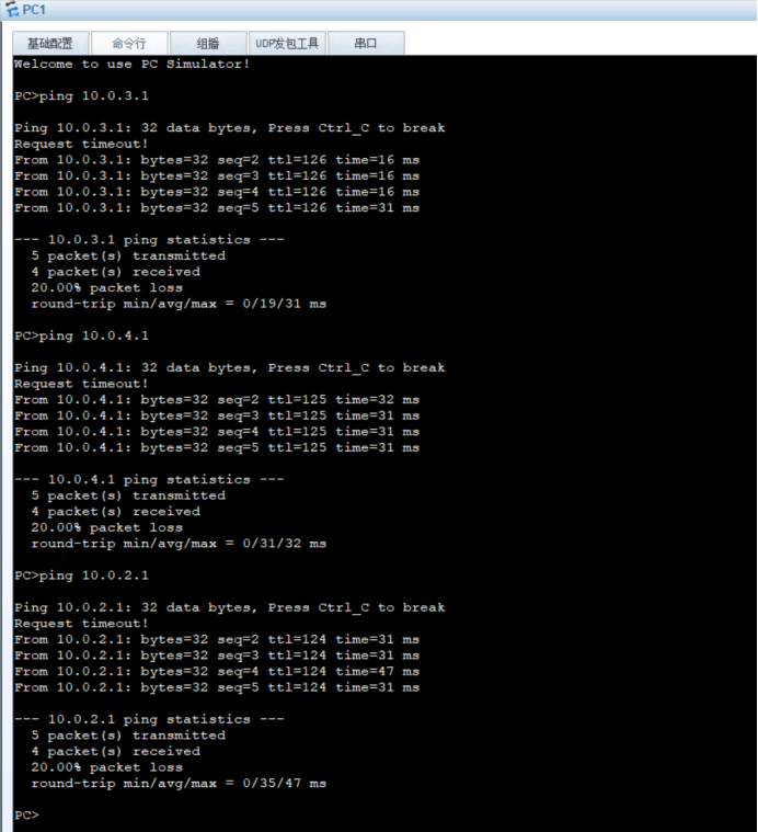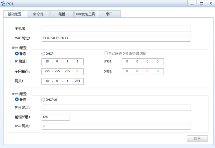 五、PC1-4 配置IP地址: