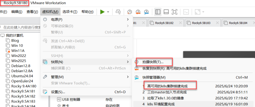 四十二、成果:Master1\2\3,node1\2拍摄快照。快照名称:高可用的k8s集群搭建完成