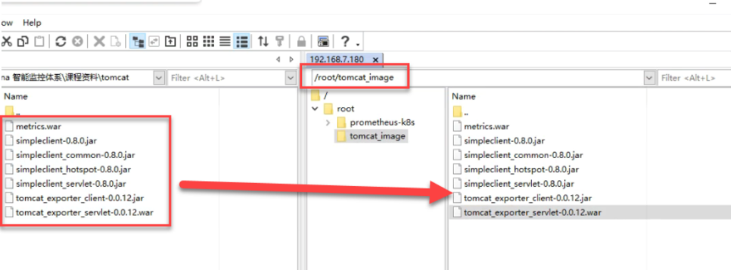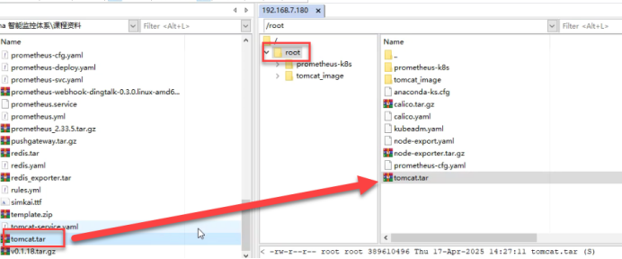 四、在master1上,将tomcat_prometheus镜像保存文件远程复制到node1\ode2的root目录下