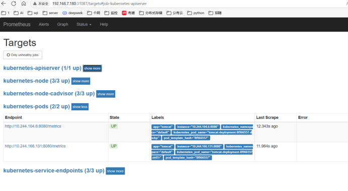 [root@master1 prometheus-k8s]# kubectl apply -f kube-state-metrics-svc.yaml 应用kube-state-metrics服务的配置文件