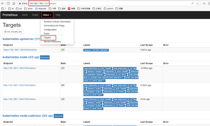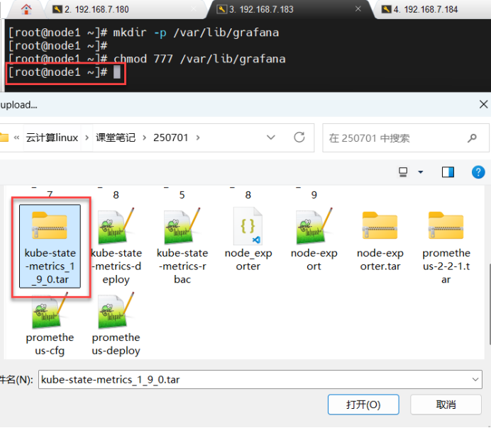 [root@node1 ~]# ctr -n k8s.io images import kube-state-metrics_1_9_0.tar.gz node1、node2导入kube-state-metrics的镜像