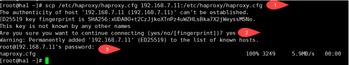[root@ha1 ~]# scp /etc/haproxy/haproxy.cfg 192.168.7.11:/etc/haproxy/haproxy.cfg将haproxy的配置文件远程复制到192.168.7.11的配置文件目录下(scp远程复制)