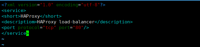 [root@ha1 ~]# vi /etc/firewalld/services/haproxy.xml 创建haproxy的服务配置文件(用来声明:haproxy做负载均衡的)