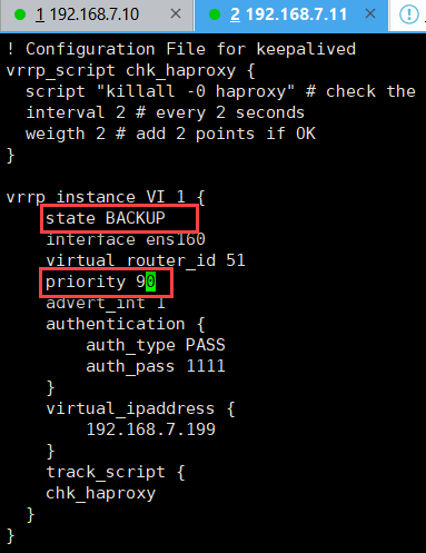 vrrp_script chk_haproxy { 定义检查chk_haproxy的脚本