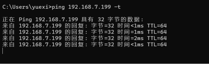十七、真实机持续Ping 192.168.7.199