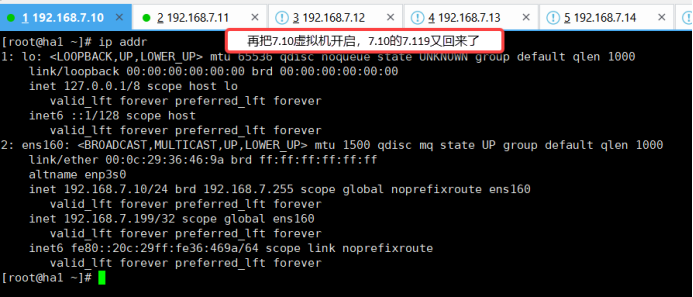 [root@ha1 ~]# ip addr 查看IP地址