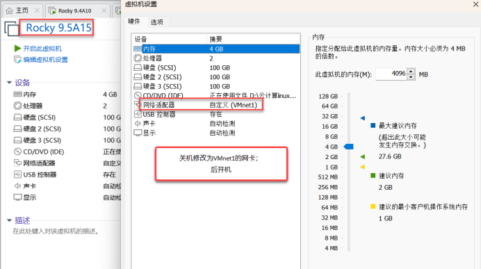 二十九、关机修改为VMnet1的网卡,后开机