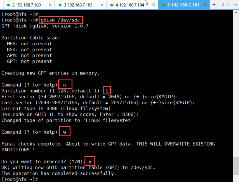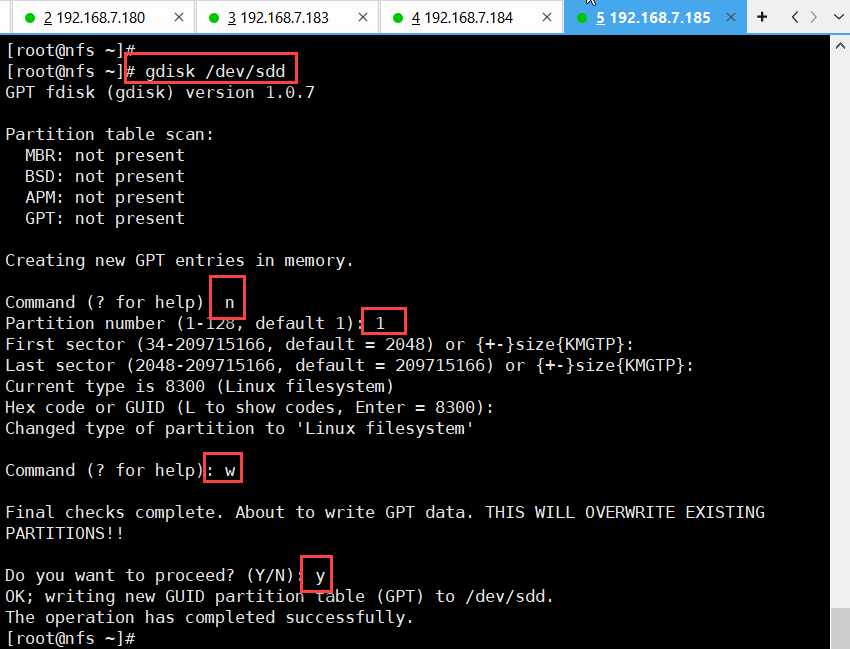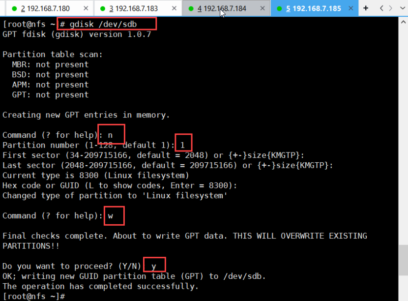 [root@habor] gdisk /dev/sdb(对sdb磁盘进行分区)