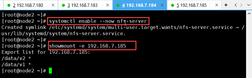 node1、node2上安装nfs、启动nfs并设置开机启动
