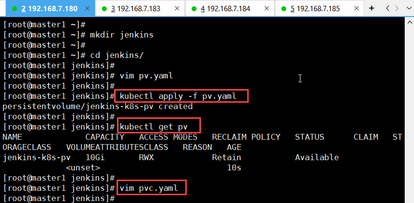 [root@master1 jenkins~]# kubectl apply -f pvc.yaml(查看pvc)