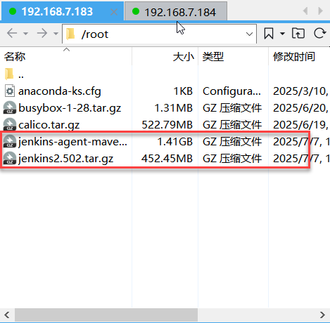 node1、node2上传jenkins-agent和jenkins2.502tar镜像包