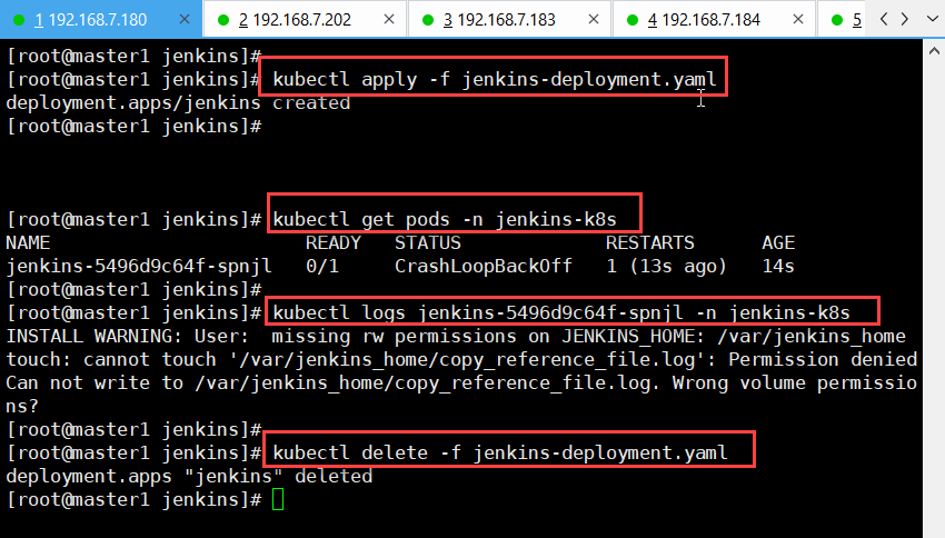 [root@master1 jenkins~]# kubectl delete -f jenkins-deployment.yaml(删除Jenkins无状态服务配置文件)