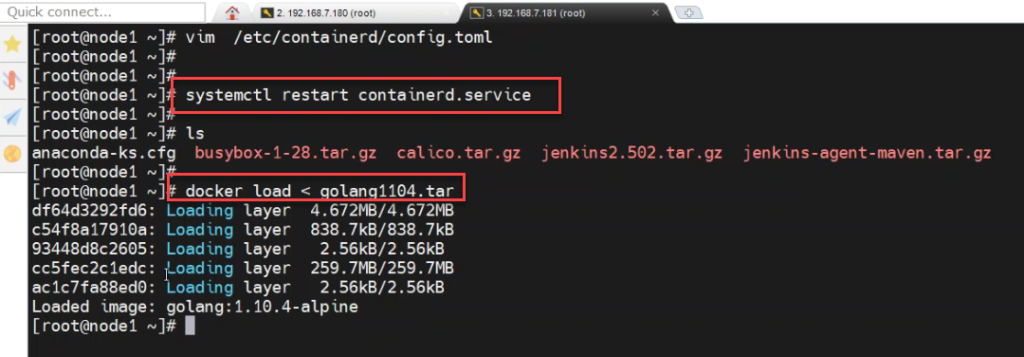 [root@node1\node2 ~]# ctr -n k8s.io images import jenkins-agent-maven.tar.gz(导入jenkins-agent-maven镜像)