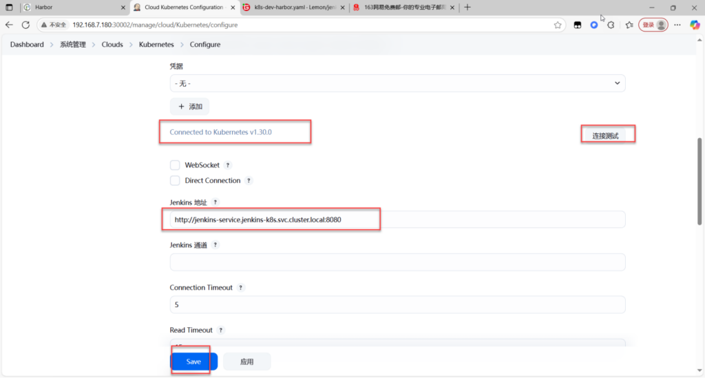 [root@master1 jenkins~]# kubectl create clusterrolebinding jenkins-k8s-sa-cluster -n jenkins-k8s --clusterrole=cluster-admin --serviceaccount=jenkins-k8s:jenkins-k8s-sa(对sa账号进行RABC授权)