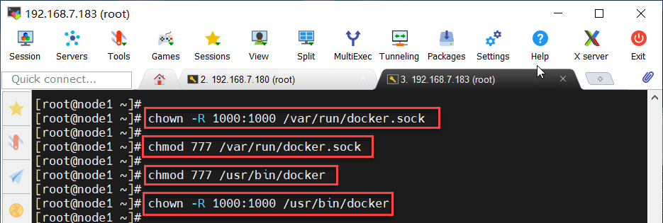 [root@node1 ~]# chown -R 1000:1000 /var/run/docker.sock(递归地将/docker.sock更改为用户ID 1000 和所属组ID 1000)