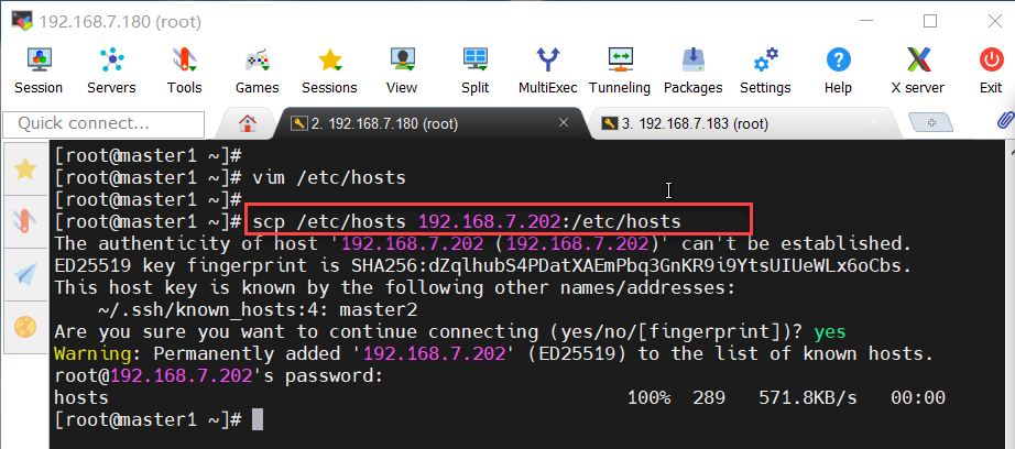 scp /etc/hosts 192.168.7.202:/etc/hosts(将hosts文件复制剪切到192.168.7.202:/etc/hosts)