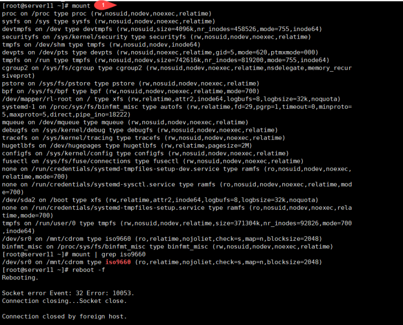 [root@server10 ~]# mount | grep iso9660 查看光盘是否挂载;如果出现is9660就表示挂载了