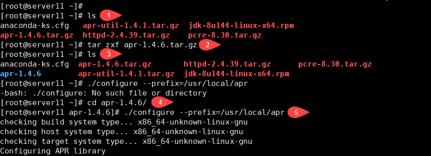 [root@server10 ~]# cd apr-1.4.6 进入apr的目录