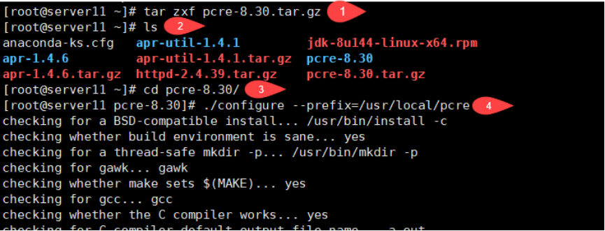 [root@server10 ~]# tar zxf pcre-8.30.tar.gz tar包解压pcre的软件包