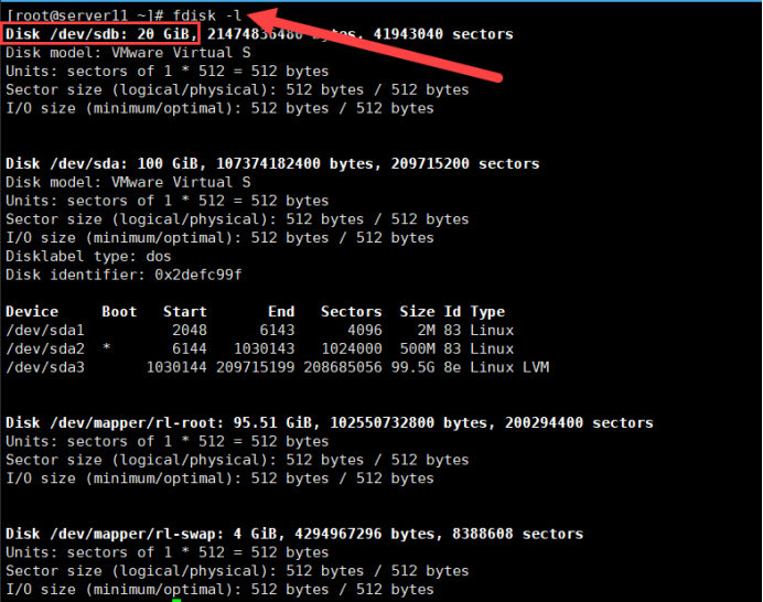 [root@server10 ~]# fdisk -l | grep sdb 查看sdb磁盘的分区情况