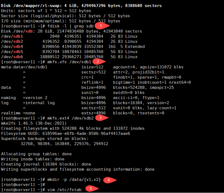 [root@server10 ~]# mkfs.ext4 /dev/sdb2 用ext4格式化sdb2的磁盘