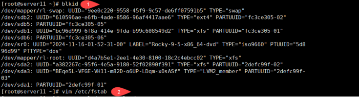 [root@server10 ~]# blkid /dev/sdb1 查看sdb1的磁盘UUID