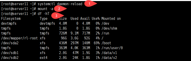 /dev/sdb2 ext4 2.0G 24K 1.8G 1% /data/v2 挂载/data/v2目录下