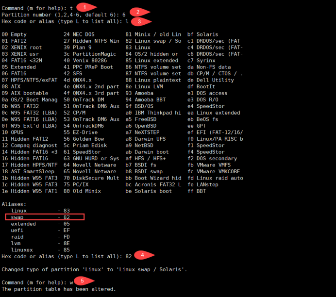 Adding logical partition 5 默认添加分区号5,为逻辑卷