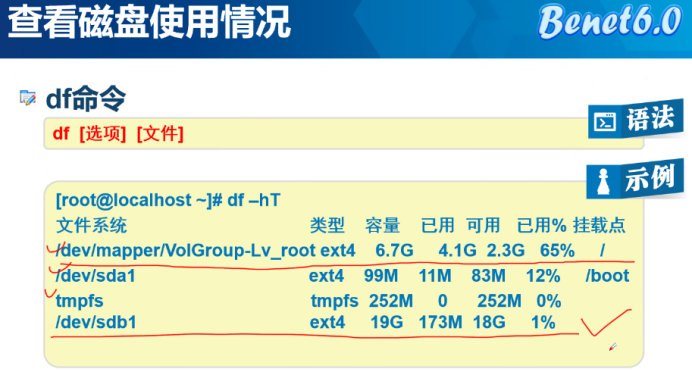 [root@server10 ~]# df -hT 查看磁盘容量(-h方便阅读的方式显示,T是文件系统类型)