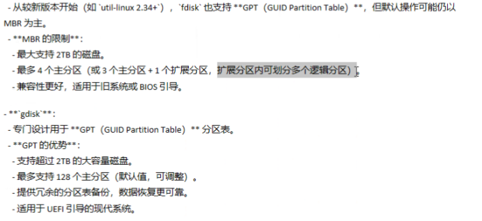 – 从较新版本开始(如 `util-linux 2.34+`),`fdisk` 也支持 **GPT(GUID Partition Table)**,但默认操作可能仍以 MBR 为主。